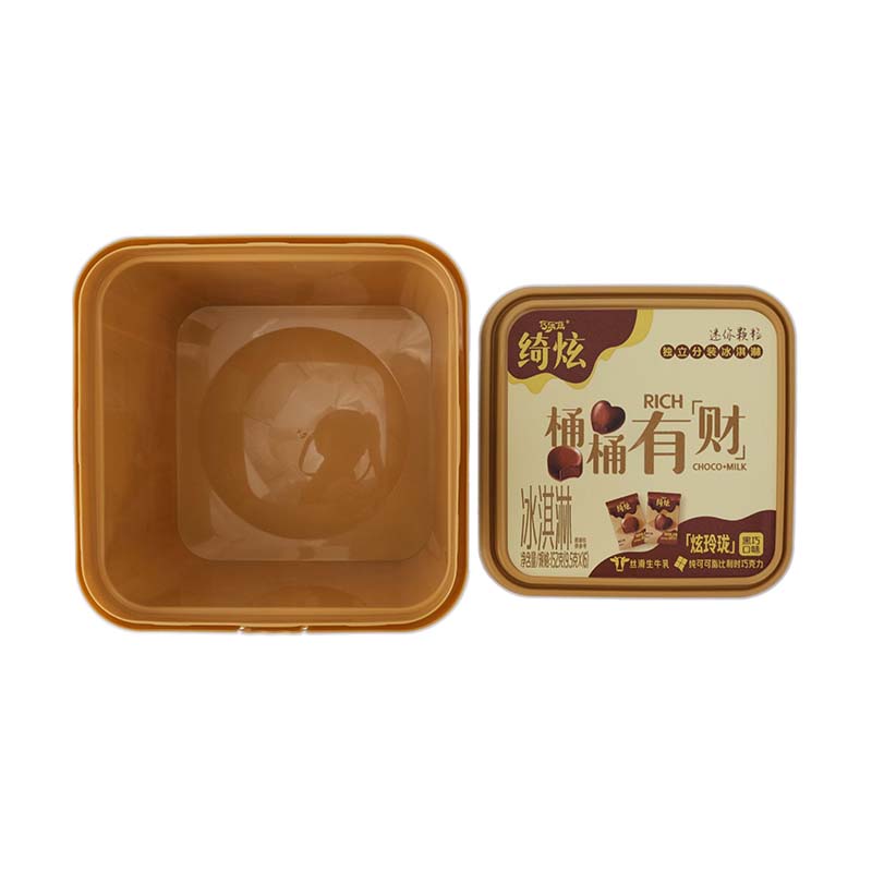 - Bekas plastik PP boleh digunakan untuk ais krim, yogurt, gula -gula, puding dan juga boleh digunakan untuk penyimpanan makanan lain yang berkaitan. Bekas boleh dengan IML, sudu yang dipasang di bawah tudung. Plastik pengacuan suntikan yang merupakan pembungkusan yang baik dan boleh guna dan tahan lama.